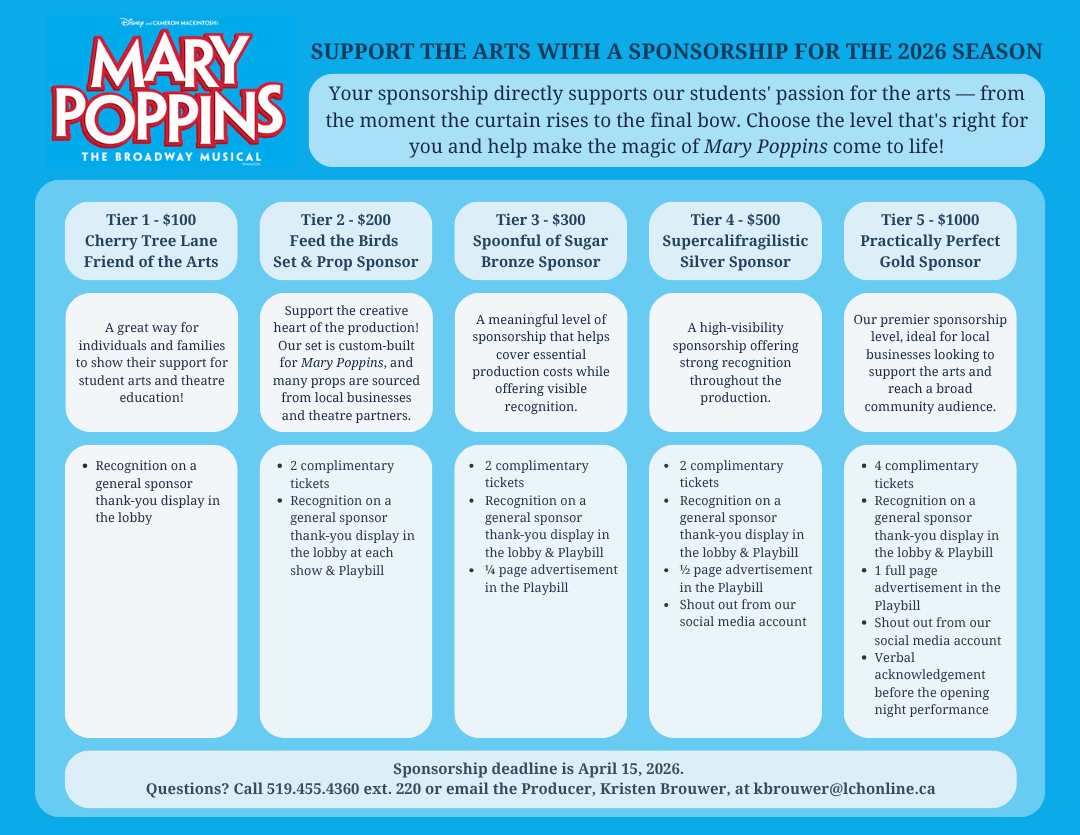 | $23The LCH Drama club proudly presents Disney’s Mary Poppins!