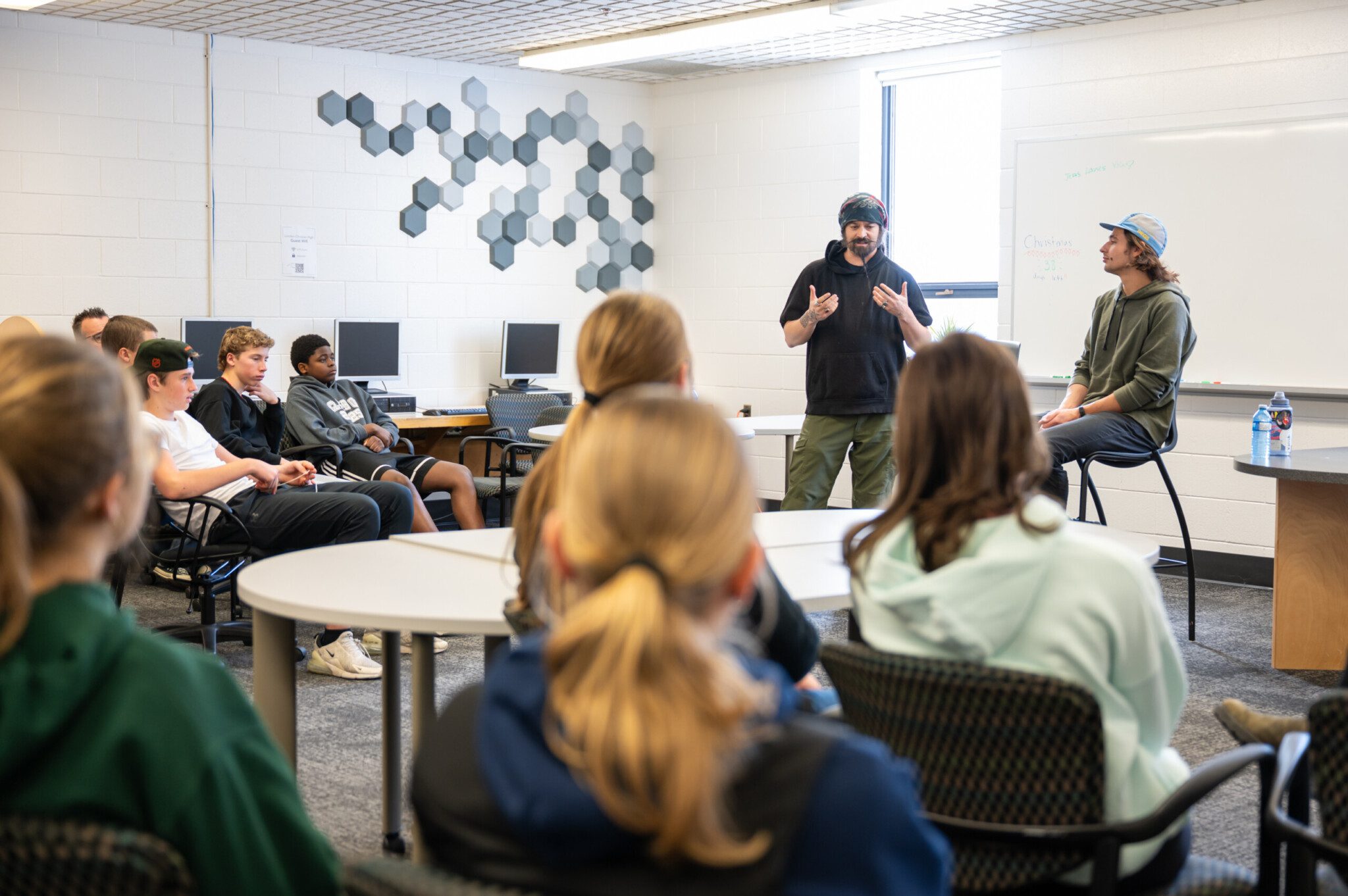 Mr. Hesman invited Dan and Jude to speak to the Grade 9 Math class. They shared real stories and statistics about homelessness and poverty in London and answered many thoughtful student questions.