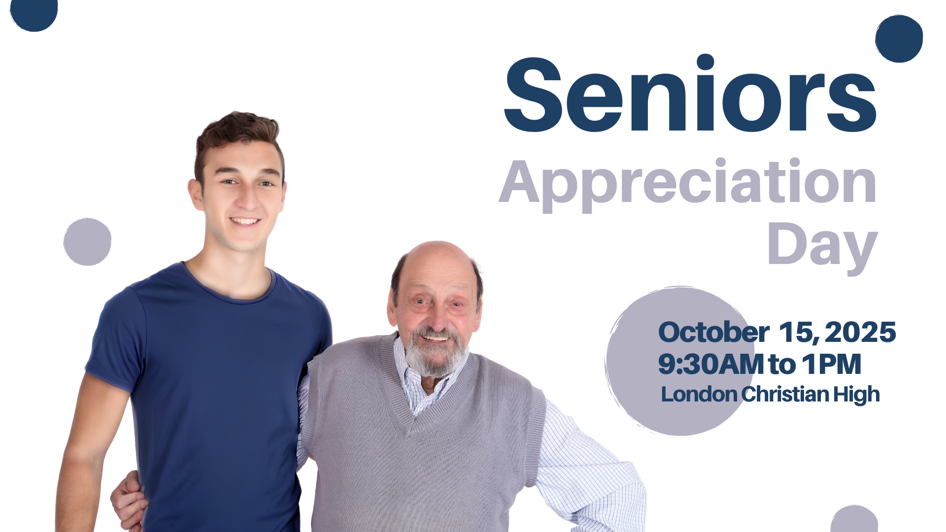 We invite all grandparents and special seniors to join us at LCH on Wednesday, October 15 from 9:30 - 1:00 pm to celebrate God’s faithfulness here at London Christian High. Grandparents and Seniors will be treated to coffee, refreshments, an assembly, classroom visits, and lunch during their time at LCH.