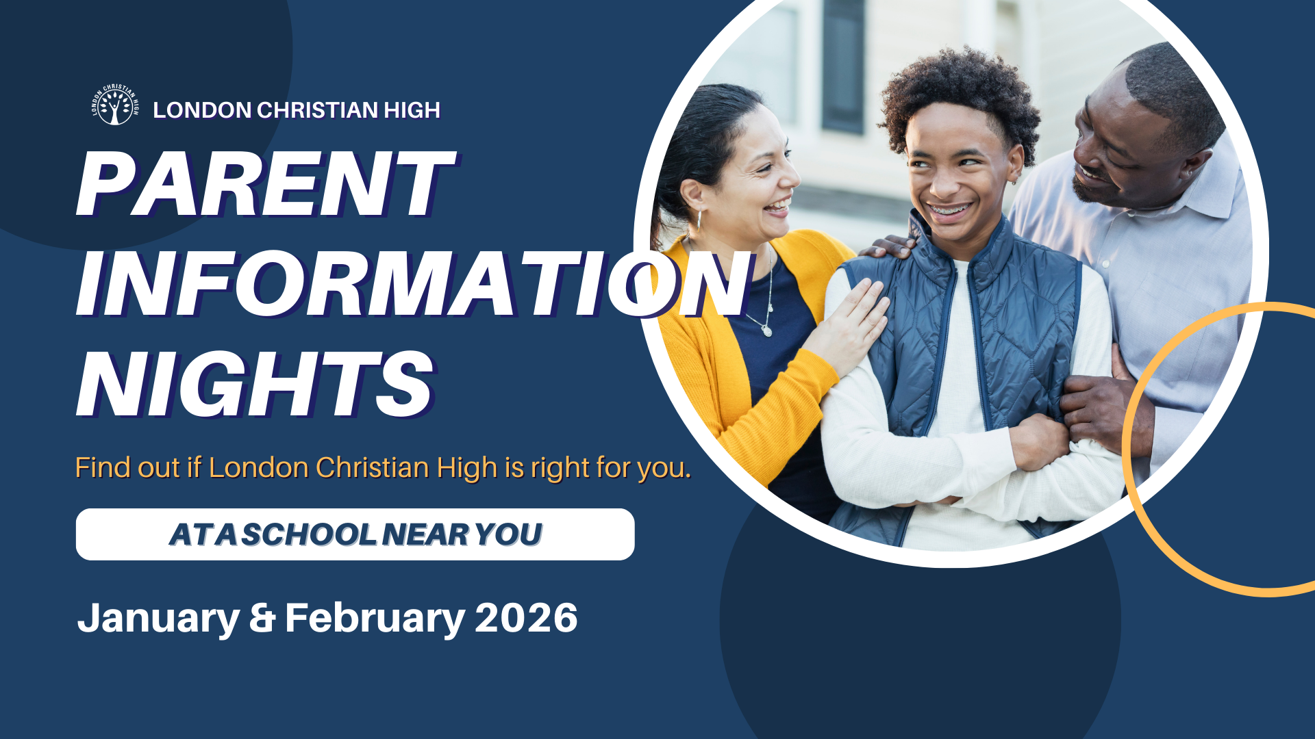 Parent Information Nights are happening in 9 different locations between January 13 and February 12. Whether your student is entering high school next year or in a few years’ time, this Parent Information Night is your chance to get a deeper understanding of London Christian High.